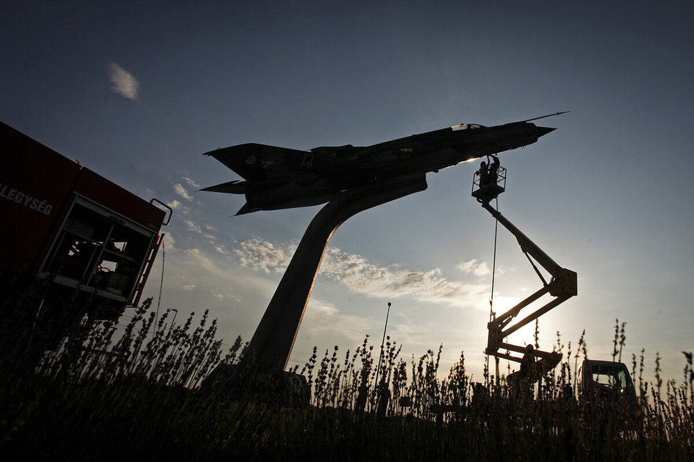 Megtisztult a 4605-ös MiG-21 MF Emlékmű Pápán Újra régi fényében a 9307-es MiG-21 MF Pápán Soproni Károly emlékmű avatása MH PBRT
